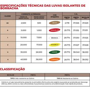 Especificações técnicas - Material: Borracha isolante. - Conformidade: Normas NBR 10622, NBR 16295 e ASTM D120. - Classe: 2. - Tensão máxima: 20000V. - Tipo: Tipo II. - Certificação: CA 29773.
