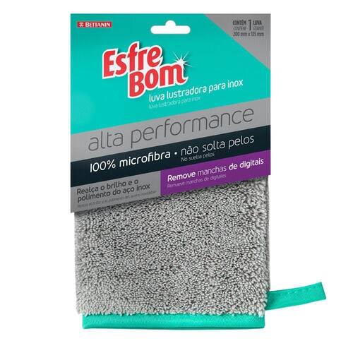 A Luva Lustradora para Inox Esfrebom é indicado para realçar o brilho e o polimento do aço inox. De alta performance, a Luva lustradora é 100% microfibra e Não solta pelos. A Luva Lustradora é Perfeita para ser utilizada: Na Remoção de manchas digitais, Para realçar o brilho e o Polimento do aço inox. Medidas aproximadas do produto - Comprimento: 20 cm - Altura: 1 cm - Largura: 13,5 cm - Peso: 130 g