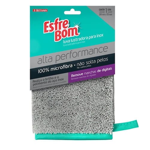 A Luva Lustradora para Inox Esfrebom é indicado para realçar o brilho e o polimento do aço inox. De alta performance, a Luva lustradora é 100% microfibra e Não solta pelos. A Luva Lustradora é Perfeita para ser utilizada: Na Remoção de manchas digitais, Para realçar o brilho e o Polimento do aço inox. Medidas aproximadas do produto - Comprimento: 20 cm - Altura: 1 cm - Largura: 13,5 cm - Peso: 130 g
