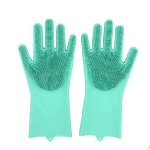 - Material: Silicone - Dimensões: 32 x 15 x 1 cm - Tamanho único - Resistentes à água quente - Protege as mãos - Podem ser usadas para lavar banheiro, fogão, louça, automóvel e até para banhar os pets - Use-as também para tirar pratos quentes do forno - Possui Elasticidade As luvas possuem cerdas de silicone que são fáceis de higienizar, não riscam, não acumulam germes e duram muito mais que uma bucha. Além disso, você vai economizar tempo lavando pois ambas as luvas possuem cerdas. -as luvas de silicone podem ser utilizadas em qualquer lugar que você faz uma limpeza. Estas luvas mágicas de limpeza podem ser usadas para lavar louça, limpar frutas e vegetais, fazer a limpeza doméstica e até fazer a lavagem do carro.