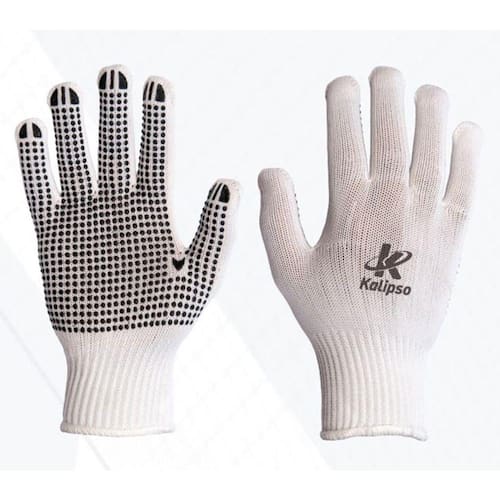 Descrição: Luva de segurança tricotada em fios de poliamida, com aplicação de pigmentos e PVC antiderrapante na palma e