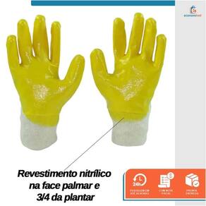Características técnicas: Confeccionada em malha de algodão tricotada em uma só peça. Revestimento nitrílico na face palmar e 3/4 plantar. Punho elástico. Certificado de aprovação: CA Nº 49.472. Tamanho: 10/XG Cores: Palma, ponta dos dedos e parcial dorso amarela e parcial dorso e punho bege. Normas técnicas: EN 407:2004, BS EN 388:2016 + A1:2018, ISO 21420:2020 Níveis de desempenho: 3111X, X1XXXX Ref.: 7971311 Marca: Starfer Marca: Não Informado Ean: 7891638065126
