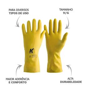 Contém: 1 par de Luvas Multiuso Látex Amarela 9/G Kalipso