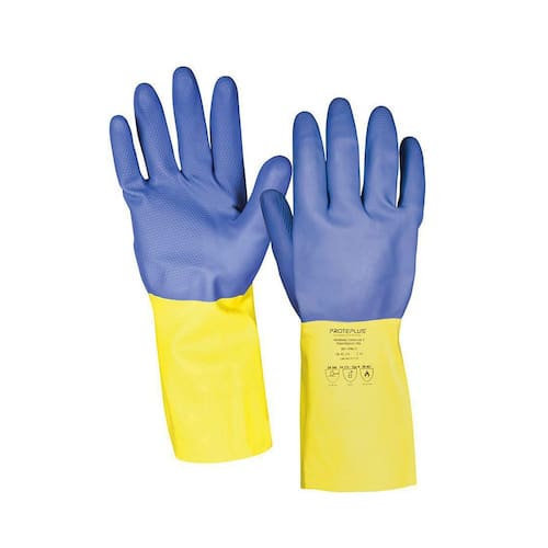 Luva Neoprene Tamanho 9 Proteplus Especificações da luva 100% de neoprene premium : Luva de segurança proteplus® para agentes químicos, confeccionada 100% em neoprene premium. Palma azul e dorso amarelo com interior flocado. Antiderrapante na palma, face palmar dos dedos e ponta dos dedos, para proteção contra risco químico, umidade e calor de contato. Resistência: classe a: resistente a álcoois primários; classe k: resistente a bases inorgânicas; classe l: resistente à ácidos minerais inorgânicos. 33cm de comprimento e espessura de 70mm. Tamanhos: 07 p , 08 m , 9 g e 10 gg Marca: Não Informado