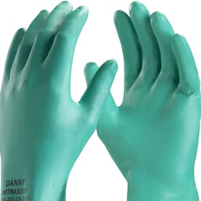 Especificações técnicas - Material: borracha nitrílica. - Comprimento: 33 cm. - Espessura: adequada para alta sensibilidade. - Forro: algodão flocado (DA-36.201). - Cor: Verde. - CA: 25313.