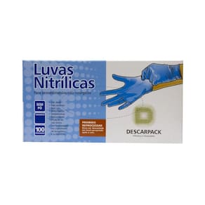 Luva Nitrílica Azul Descarpack 20 Caixas com 100 Unidades As Luvas Nitrílicas Descarpack são desenvolvidas para oferecer segurança, resistência e conforto. Produzidas em nitrila, não possuem látex, reduzindo riscos de alergias e oferecendo proteção contra agentes químicos, biológicos e pequenos cortes. Características do Produto: - Marca: Descarpack - Modelo: Nitrílica Azul, não estéril e sem pó - Quantidade: 20 caixas com 100 unidades cada total 2000 luvas - Ambidestra - Texturizada na ponta dos dedos para melhor aderência - Alta resistência a furos e agentes químicos - Descartável, de uso único Excelente sensibilidade tátil e ajuste anatômico Indicação de Uso: - Área da saúde, laboratórios, clínicas e hospitais - Estética, tatuagem, beleza e procedimentos em geral - Indústria alimentícia e manipulação de alimentos - Limpeza, manutenção e serviços diversos - Indústrias e em geral Vantagens: Livre de látex, reduzindo risco de alergias Sem pó, proporcionando mais higiene e conforto Alta resistência e durabilidade Excelente custo-benefício no kit com 20 caixas Marca: Não Informado
