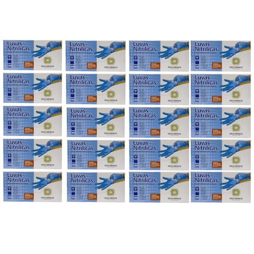 Luva Nitrílica Azul Descarpack 20 Caixas com 100 Unidades As Luvas Nitrílicas Descarpack são desenvolvidas para oferecer segurança, resistência e conforto. Produzidas em nitrila, não possuem látex, reduzindo riscos de alergias e oferecendo proteção contra agentes químicos, biológicos e pequenos cortes. Características do Produto: - Marca: Descarpack - Modelo: Nitrílica Azul, não estéril e sem pó - Quantidade: 20 caixas com 100 unidades cada total 2000 luvas - Ambidestra - Texturizada na ponta dos dedos para melhor aderência - Alta resistência a furos e agentes químicos - Descartável, de uso único Excelente sensibilidade tátil e ajuste anatômico Indicação de Uso: - Área da saúde, laboratórios, clínicas e hospitais - Estética, tatuagem, beleza e procedimentos em geral - Indústria alimentícia e manipulação de alimentos - Limpeza, manutenção e serviços diversos - Indústrias e em geral Vantagens: Livre de látex, reduzindo risco de alergias Sem pó, proporcionando mais higiene e conforto Alta resistência e durabilidade Excelente custo-benefício no kit com 20 caixas