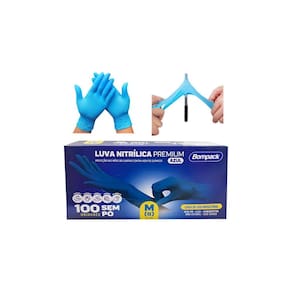 Luva Nitrílica Comfort Azul Sem Pó Bompack Tam M C/100 Un
