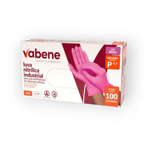 Luva Nitrilica Protecao Industrial Rosa P 100Un - Vabene