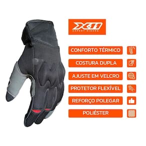 Luva Nitro 4 X11 MOTO Motociclista Moto Bike - GG Luva leve, flexível e arejada, com protetor macio em silicone, para atender tanto na aventura como na cidade. Luva cano curto; Luva em tecido poliéster micro ripstop; Manga em neoprene com relevo; Impressão emborrachada nos dedos indicador e médio; Forração interna macia; Áreas arejadas por perfuração nas palmas; Áreas de conforto nas articulações dos dedos indicador e médio; Tecido arejado e flexível entre os dedos; Proteção flexível XShock Absorb Silicone Tech Duo; Reforço na palma; Reforço na entre os dedos indicador e polegar; Reforço nos dedos mínimo e anelar; Ajuste emborrachado no punho.