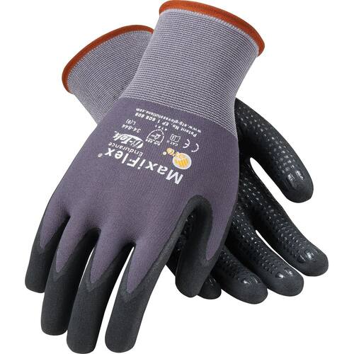 Luva de malha de resistência MaxiFlex 34-844/M PIP 34-844/M, média, cinza (pacote com 12) - Os revestimentos de nitrilo de microespuma são compatíveis com óleos leves e fornecerão uma boa aderência e excelente resistência à abrasão - Os micro pontos elevados aumentam a durabilidade e oferecem mais amortecimento em aplicações altamente repetitivas que exigem manuseio preciso - O pulso de malha ajuda a evitar que sujeira e detritos entrem na luva - 100% sem silicone - O revestimento patenteado de nitrilo de microespuma oferece respirabilidade de 360°