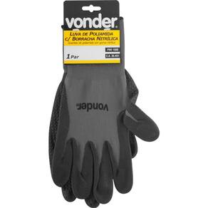 Luva Poliamida/borracha Nitrílica Tamanho 10 Ca34451 Vonder Conteúdo da embalagem 1 Par de luvas Aplicações e dicas de uso Indicada para proteção das mãos no manuseio de peças escorregadias, atividades de carga e descarga de materiais, em manutenções industriais, montadoras e autopeças e trabalhos que exijam aderência com excelente tato Destaques e diferenciais Possui pigmentos antiderrapantes de nitrilo na palma e face palmar dos dedos, proporcionando excelente aderência, além de punho tricotado em elastano com acabamento overloque DETALHES TÉCNICOS