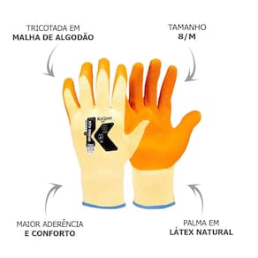 Contém: 1 par de Luvas Proteção Orange Flex 8/M Kalipso.