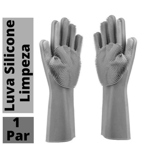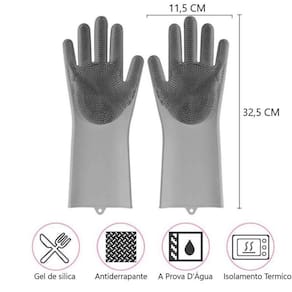 par de luvas em silicone com filamentos nas palmas das mãos utilizados para lavar louças com muito mais praticidade e higiene. Por serem confeccionadas 100% em silicone de uso culinário, podem ser esterilizadas em água quente, micro-ondas ou lava louças. Características do produto aviso sobre o produto: imagem ilustrativa. Tipo: utensílios em silicone. Tamanhos: único. Material utilizado na fabricação: silicone. Disponível em cores. O pacote inclui: 01 par de luvas lava-louça