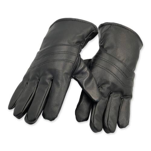 Luva térmica de couro sintético - tam. Único Luva térmica de couro sintético - tamanho único desenvolvida para acabar com o desconforto de mãos geladas e o frio extremo, esse par de luvas se tornará seu aliado nos dias de inverno confeccionada em um material que garante máxima proteção ao frio, aliado a durabilidade e conforto, além de oferecer um design moderno para você. Permite flexibilidade ao mexer as mãos e maior resistencia, proporcionando segurança ao te proteger em estações mais frias. ótimas para as atividades ao ar livre; no momento de pegar a estrada em seu carro ou moto; fazer caminhada; entre outras atividades. - forrada internamente com um material fofo e quente, garantindo maior proteção ao frio.- material térmico. cuidados:- não expor diretamente ao sol.- não usar produtor clorados.- secar em baixa temperatura.- não passar o ferro. especificações:material: poliuretano e lã. Dimensões: alt. 28cm x larg. 13cm.Peso: 130g aprox.Cor: preto contém:01 par de luvas de couro sintético preto tamanho único Marca: Não Informado Ean: 7908631400226