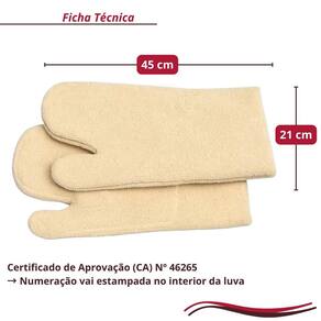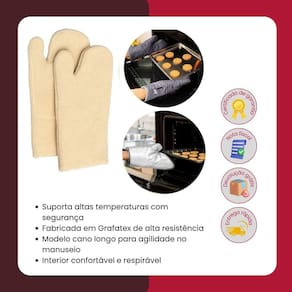 Luva térmica em grafatéx - cano longo par A luva térmica em grafatex é o item essencial para quem busca proteção, conforto e segurança no manuseio de objetos quentes. Ideal para padarias, confeitarias, cozinhas profissionais e residenciais, esta luva resiste a altas temperaturas e garante segurança total durante o trabalho. Fabricada em grafatex, material conhecido pela alta resistência térmica, a luva é durável, confortável e fácil de limpar, proporcionando um desempenho confiável em qualquer ambiente de cozinha. Usabilidade Utilize a luva térmica em grafatex sempre que precisar retirar formas, assadeiras ou utensílios quentes do forno. Seu interior macio e respirável garante conforto mesmo após longos períodos de uso. Fácil de limpar e secar, é perfeita para uso diário em cozinhas domésticas e profissionais. Ficha técnica Material: grafatex resistente tamanho: 45 cm cor: bege tipo: cano longo temperatura de resistência: até 300c Quantidade: 1 par indicação: cozinha, padaria, confeitaria, churrasco a resistência térmica pode variar conforme o tempo de exposição ao calor 10 benefícios do produto Suporta altas temperaturas com segurança fabricada em grafatex de alta resistência modelo cano longo para agilidade no manuseio interior confortável e respirável protege mãos e punhos contra queimaduras ideal para fornos, churrasqueiras e confeitarias material durável e de longa vida útil antiderrapante e firme no toque lavável e fácil de higienizar excelente custo-benefício para Não encontrou o que precisava Fale com a gente sua sugestão é muito bem-vinda. Vamos buscar a melhor opção com preço competitivo, para que você possa adicionar tudo ao carrinho e receber em um único pacote. A isamar Desde 1978, a isamar é referência em panificação e confeitaria. Nosso compromisso é criar parcerias sólidas, oferecer produtos de qualidade e impulsionar o sucesso dos nossos clientes. Enviamos para todo o brasil, levando soluções completas e atendimento próximo, transformando clientes em verdadeiros parceiros e amigos. Marca: Não Informado Ean: 7894369004242