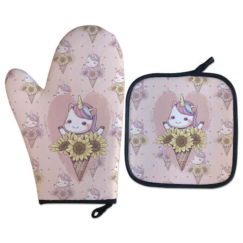 Luva Térmica Para forno Unicórnio Sorvete Presente Criativo Cor: Rosa A Luva Térmica Para forno Unicórnio Sorvete - Presente Criativo é uma ótima adição para a sua cozinha criativa. Ótimo presente para quem ama sorvete e unicórnio. O kit acompanha uma luva térmica e um aparador, para te ajudar na hora de pegar suas panelas e formas quentes. Especificações: Dimensões: 18 cm x 26 cm Material: Neoprene Instruções de Lavagem: Lavagem manual com água e sabão neutro Marca: Geek Vip