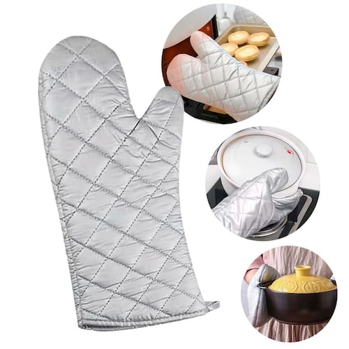 Material: 50% Poliéster, 50% Algodão Tipo: Luva térmica doméstica Uso indicado: Forno, fogão e churrasqueira Resistência térmica: Adequada para uso doméstico Design: Anatômico para maior conforto