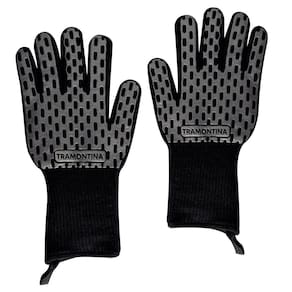 Luva Tramontina Churrasco Black 02 Peças Para manusear fornos, churrasqueiras, grelhas e outras superfícies quentes com maior segurança, conte com a luva Tramontina Churrasco black 02 peças. Desenvolvida em aramida e silicone, ela conta com a parte interna em poliéster e vai deixar seu manuseio muito mais confortável e versátil, seja qual for item! Ideal para manusear braseiros ou superfícies quentes como grelhas. Luvas com tecido interno de poliéster e externo de aramida e silicone. Versátil para facilitar o manuseio de utensílios quentes durante o preparo. Cuidados com o produto Recomenda-se que o contato com o braseiro seja de forma breve, pois o contato prolongado com a brasa poderá gerar danos no material e causar queimaduras. Não utilizar em contato com chama.Para descarte dos produtos e embalagem siga as orientações de reciclagem vigentes. Titulo 04 90 dias para vícios ou defeitos de fabricação.