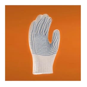 Luva de segurança tricotada em quatro fios de algodão com pigmentos em PVC na face palmar. Utilização: Aprovada para proteção das mãos dos usuários contra agentes: abrasivos, escoriantes, cortantes e perfurantes. Equipamento: Luva para proteção contra agentes mecânicos Restrições Limitações: Epi não aprovado contra arco elétrico, fogo repentino e combate a incêndio Higienização: Lavar com água e sabão neutro, secar a sobra Tamanho: Único Embalagem: Par Normas técnicas: EN 420:2003 BS EN 388:2003 Luva de segurança tricotada em quatro fios de algodão com pigmentos na palma, ideal para proteção das mãos contra agentes: abrasivos, escoriantes, cortantes e perfurantes. Luva de segurança tricotada em quatro fios de algodão com pigmentos na palma, ideal para proteção das mãos contra agentes: abrasivos, escoriantes, cortantes e perfurantes. Marca: Não Informado Ean: 1006003557441