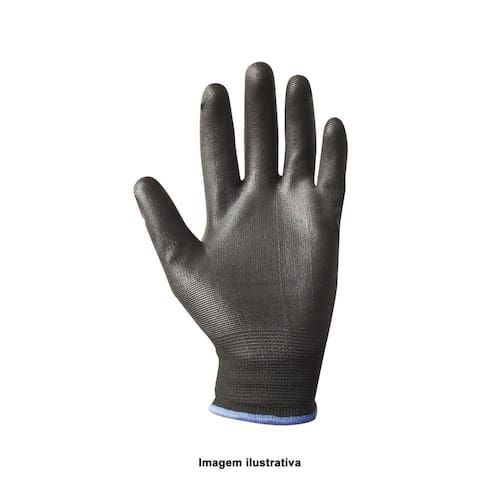 - Descrição: luva de segurança tricotada com fios de poliéster, revestimento de poliuretano na palma, face palmar e ponta dos dedos. Punhos tricotados com acabamento em elástico; - Aplicação: utilizada na mecânica de autos devido a boa sensibilidade de tato Agentes mecânicos abrasão, corte, rasgamento e perfuração em indústria metal e mecânica, construção civil, madeireira, plástica, cerâmica, coleta de lixo, jardinagem, uso doméstico e outros;