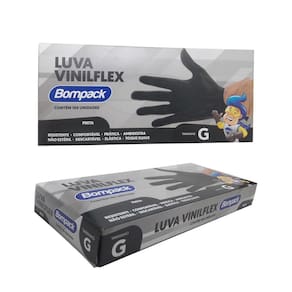 Atenção: imagens meramente ilustrativas. Contém: 100 un - luva vinilflex rosa. Tamanho m. Bompack. 100 un - luva vinilflex preta. Tamanho g. Bompack. Indicada para uso em higiene, engraxar sapatos, jardinagem, cuidados pessoais, preparar alimentos, aplicação de tinturas e cremes capilares, manuseio de louças e trato com animais. Verificar o tamanho correto para suas mãos, calçar a luva cuidadosamente. Recomenda-se retirar anéis ou outros acessórios que possam perfurar a luva. Características: Luva vinilflex é resistente, confortável, prática, ambidestra, não estéril, descartável, elástica e com toque suave. Biodegradável de tpe elastômero termoplástico . Produto não perecível com validade indeterminada. Composição: elastômero termoplástico. Ean: 7895291371426