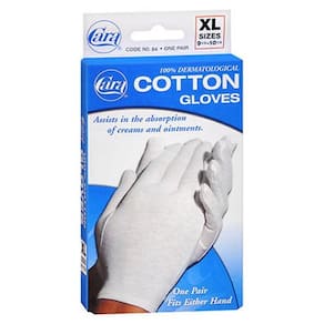 Descrição do produto Proteção higiênica elegante, confortável e macia para as mãos. 100% algodão, hipoalergênico, com bainha para uma aparência elegante e embalado para facilitar o acesso. Beneficia a absorção de cremes para as mãos e pomadas medicamentosas. Esconde doenças da pele. Evita manchas em tecidos e roupas. Um par cabe em qualquer mão. Compatível com os tamanhos 9-1/2 - 10-1/2. Benefícios do produto Sugestões de ingredientes Nota especial Avisos Isenções de responsabilidade: 1. Oferecemos produtos de marca nacional que são produzidos de acordo com os padrões de fabricação estabelecidos pelos reguladores a preços baixos todos os dias. Não use produtos não comprovados e sem marca, que podem representar sérios riscos à sua saúde.