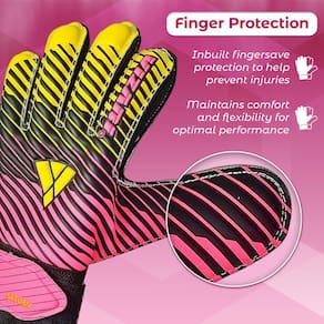 Vizari Luvas de goleiro de futebol Saturn F.P. com suporte de dedo - rosa/amarelo, tamanho 4 | Luvas de goleiro embutidas com proteção contra dedos | Luvas de futebol de palma de espuma Duplatex de 3