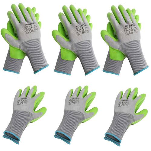 WORKPRO 6 pares de luvas de jardim de poliéster com revestimento de palma de látex ecológico, luvas de trabalho para homens e mulheres, luvas de trabalho para remoção de ervas daninhas, escavação, ancinho e poda - Resistência à abrasão e flexibilidade: Estas luvas de trabalho são revestidas com eco-látex revolucionário, oferecendo máxima resistência à abrasão e flexibilidade. A superfície de waffle antiderrapante melhora sua aderência e melhora a eficiência do seu trabalho - Leve e confortável: feitas de poliéster altamente respirável e elástico, estas luvas de jardim oferecem agilidade e conforto superiores, mantendo suas mãos frescas e secas enquanto trabalha no jardim - Proteção total para suas mãos: Estas luvas protegem sua pele de lesões e mantêm suas mãos e unhas limpas durante o trabalho no quintal, tornando as tarefas de jardinagem mais agradáveis - Perfeito para várias tarefas: ideal para jardinagem, tarefas domésticas, conserto de automóveis, trabalho mecânico, construção e outros projetos de bricolage. O conjunto inclui seis pares de luvas laváveis, prontas para ajudar sempre que necessário - Observação: consulte nossa tabela de tamanhos à esquerda para encontrar o tamanho correto (apenas guia). Se você estiver entre tamanhos, recomendamos escolher o maior. Para um ajuste mais solto, selecione um tamanho acima