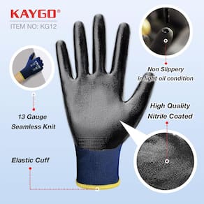 - Aderência e proteção superiores: O revestimento de nitrilo suave de alta qualidade nas palmas das mãos e dedos garante excelente aderência em condições de óleo seco e leve, proporcionando maior segurança e controle