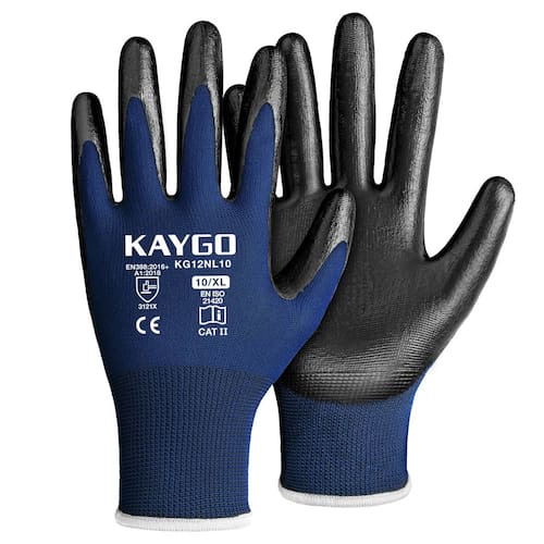 Atualize a proteção das suas mãos com as luvas de trabalho da KAYGO projetadas para atender aos mais altos padrões de segurança e desempenho. Se você estiver trabalhando na construção, reparo automotivo ou enfrentando projetos de bricolage, essas luvas oferecem aderência, proteção e conforto incomparáveis. O revestimento de nitrilo suave de alta qualidade oferece aderência superior, mesmo em condições de óleo leve, reduzindo o risco de escorregões e acidentes. O design de malha sem costura de calibre 13 garante um ajuste confortável e flexível que permite o máximo de destreza, facilitando o manuseio de ferramentas e a execução de tarefas complexas. A parte traseira de poliéster respirável mantém suas mãos frescas e secas, tornando essas luvas confortáveis para longas horas de uso. O punho elástico garante um ajuste seguro, evitando que sujeira e detritos entrem nas luvas. Certificadas para atender às normas EN388: 2016, EN ISO 21420 e CAT II, essas luvas oferecem proteção confiável contra abrasões, cortes, rasgos e perfurações. Disponível nos tamanhos P a 2GG, há um ajuste perfeito para todos os tamanhos de mão. Escolha as luvas de trabalho KAYGO para proteção confiável das mãos e melhor desempenho em qualquer trabalho. Aderência melhorada: Palmas revestidas de nitrilo para aderência superior em condições de óleo seco e leve. Construção durável: malha sem costura calibre 13 para resistência e flexibilidade. Ajuste confortável: parte traseira de poliéster respirável mantém as mãos frescas e secas. Uso versátil: perfeito para tarefas industriais, automotivas, elétricas, paisagismo e gerais. Proteção certificada: atende aos padrões de segurança EN388: 2016 (3121X), EN ISO 21420 e CAT II. Faixa de tamanhos: disponível nos tamanhos P a 2GG para o ajuste perfeito. Detalhes técnicos: Marca: KAYGO Número do modelo: KG12 Material: Palmas e dedos revestidos de nitrilo, parte traseira de poliéster Tamanhos: S-2XL Cor: Preto Certificação: EN388: 2016 (3121X), EN ISO 21420, CAT II