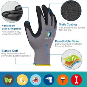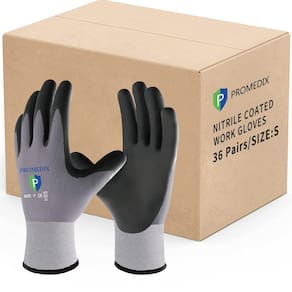 PROMEDIX P Luvas de trabalho revestidas de nitrilo, luvas de trabalho de segurança de microespuma masculinas, luvas de nylon e elastano de malha sem costura com aderência - Aderência otimizada e encaixe - Guantes De Trabajo oferece excelente resistência à abrasão e excelente aderência. Seu ajuste reduz a fadiga das mãos e aumenta o conforto. Adequado para ambientes úmidos e secos. Estamos atualizando o padrão traseiro, o produto que você recebe pode ter um padrão diferente, mas funcionar exatamente da mesma forma. - Flexibilidade e respirabilidade – A mais recente tecnologia de tricô de nylon sem costura é utilizada para produzir pontas dos dedos suaves e arredondadas, melhorando a sensibilidade e a flexibilidade das pontas dos dedos. O revestimento oferece excelente respirabilidade, reduzindo a transpiração ao longo do dia. O pulso de malha ajuda a evitar que sujeira e detritos entrem nas luvas. - DURABILIDADE e EXCELENTE DEXTERIDADE - Estes revestidos na palma e nas pontas dos dedos oferecem uma aderência segura em condições secas e ligeiramente molhadas/oleosas. Lavável na máquina. - MÚLTIPLAS APLICAÇÕES - Ideal para trabalho externo, construção regular, mecânica, logística, armazém, condução, paisagismo/jardinagem, melhoria da casa, quintal, limpeza, lavagem mecânica e trabalhos de bricolage. - Se você tiver algum problema com os produtos, ou o produto não atender às suas expectativas, a qualquer momento.