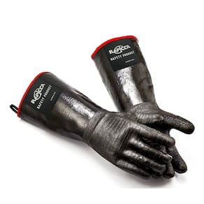 Vença o calor e crie suas obras-primas de churrasco com as luvas RAPICCA Griller Pit. Estas luvas são projetadas para proteger você enquanto você cria sua próxima refeição perfeita em sua churrasqueira ou churrasqueira, feitas com borracha de neoprene de grau alimentício, são resistentes à água, fogo e manchas. Projetado com uma palma texturizada para uma ótima aderência mesmo quando oleosa ou molhada, o forro de algodão macio mantém suas mãos frescas e confortáveis, mantendo grande destreza. Superando outras luvas resistentes ao calor e churrasqueiras no mercado. A manga de 43 cm de comprimento protege seu braço e suas mãos enquanto aguarda sua obra-prima de churrasco ou entrega itens quentes em sua defumadora ou churrasqueira. O que realmente separa estas luvas isoladas de outras no mercado são as palmas texturizadas, perfeitas para entregar itens molhados ou gordurosos diretamente no seu defumador ou churrasqueira. Eles são extremamente fáceis de limpar, já que a borracha de neoprene é à prova d'água, basta enxaguar e lavar com um pouco de sabão na pia e pendurá-los para secar. Seja para você ou o mestre em sua vida, procure as luvas RAPICCA Griller Pit de grau profissional para aproveitar ao máximo sua experiência de grelhar. - Excelente resistência a óleo e ao calor: feitas de borracha de neoprene de grau alimentício, estas luvas possuem excelente resistência à água, óleo, manchas e calor de até 500 °C. Com uma manga de 43 cm, eles fornecem proteção abrangente para seus braços e mãos enquanto você aperfeiçoa sua obra-prima de churrasco, manuseia carne quente em seu defumador ou grelha ou realiza tarefas como frango assado ou peru fritor. - Aderência firme e confortável: projetada para pit masters, esta luva possui um forro isolado de camada dupla e uma palma texturizada, garantindo uma aderência confortável e firme. Gerencie sem esforço carne quente, molhada ou gordurosa em seu defumador, churrasco ou fritadeira — ideal para dominar carne de porco desfiada como os profissionais! - Gerenciamento suave de líquido quente e vapor: experimente a extração de alimentos sem esforço de água fervente ou vapor com essas luvas, garantindo manuseio seguro e fácil. O revestimento de neoprene à prova d'água oferece uma aderência confiável, aumentando a conveniência em várias tarefas culinárias, como mergulhar um frango em água quente (faça um teste de água fria para verificar possíveis luvas defeituosas). - Experiência de limpeza sem esforço: o revestimento de neoprene flexível à prova d'água nessas luvas resiste ao calor, graxa, óleo, água e até mesmo líquidos químicos. Basta usar as luvas, lavá-las com um pouco de sabão e pendurá-las para secar ao ar livre de manchas e sem óleo! - Acessório versátil para grelhar e presente ideal: esta luva serve como um acessório perfeito para grelhar e é um excelente presente para homens e mulheres envolvidos em churrascos, grelhar, fumar, preparar alimentos, fritar peru, frango assado, mergulhar frango em água quente, atividades de fogueira, acampamento, manuseio de fogão a lenha na lareira e outras tarefas que exigem proteção das mãos e do antebraço.