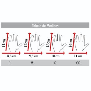 GG - Palma da mão 11 cm, Altura do pulso a ponta do dedo do meio 14 cm