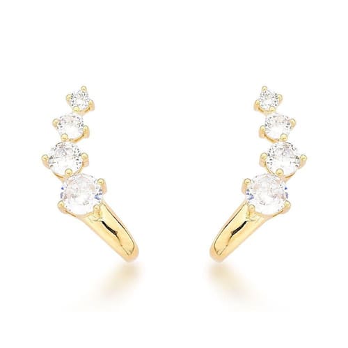 Brincos de Zircônia em Ouro 18k, estilo cascata, banhados a ouro 18k, contornam delicadamente a orelha, adicionando charme e sofisticação ao visual.