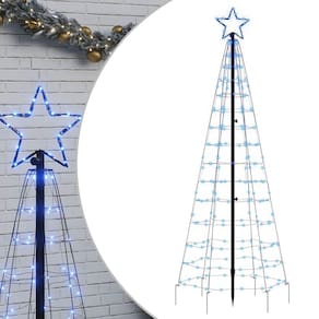 - Cor da luz: azul- - Cor do cabo: verde escuro- - Material: cobre, ferro- - Altura total: 70,9"- - Largura da estrela: 7,9"- - Número de LEDs: 220 LEDs- - Comprimento do cabo de extensão: 22,3'- - Altura do espigão de aterramento: 6,3"/11,8"- - Tensão de saída: 5 V- - Potência: 5 W- - Classificação IP: 44- - LEDs economizadores de energia - Possui 8 efeitos de luz - - Interface USB - Adequado para uso externo - - Montagem necessária: Sim - A entrega contém: - - 1 x Star Frame - 1 x poste central - 7 x fio de luz LED - - 6 x espigão de aterramento de 6,3"-