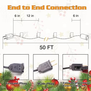 Tipo de lâmpada incluído: lâmpadas incandescentes Quantidade de luzes: 25 lâmpadas + 2 peças sobressalentes Material da caixa: vidro Potência máxima (por lâmpada): 4 Watts Tensão: 120V Impermeável: IP44 Localização: uso externo/interno Vida útil da lâmpada: 1.500 horas Brilho (lúmens): 23LM Temperatura de cor: 2200K Conecta de ponta a ponta: SIM - Dimensões e especificações: O comprimento do fio de luz c9 é de 15 metros com fio preto. O fio de soquete c9 de 50' contém um total de 50 soquetes de luz de Natal - Garantia de qualidade: O cordão de luz de Natal C9 tem certificação UL, fio 18AWG/2 SPT-1. Plugue macho 8 amperes, plugue fêmea 6 amperes - Fácil de instalar: a longarina de base c9 e17 se encaixa perfeitamente em lâmpadas LED c9, lâmpadas g50 e s11, basta parafusar na base. - Proteção de segurança: uma das luzes de Natal externas está equipada com dois fusíveis no plugue, uma vez que a tensão nominal é excedida, desligará automaticamente, escolta para sua segurança, então você só precisa substituir o fusível no plugue pode ser, o fio de luz de Natal pode funcionar novamente. Lâmpadas de 1W disponíveis - Amplamente utilizado: tanto no interior como no exterior, as luzes pretas de corda de Natal podem ser usadas para o Natal, quintal, varanda, decoração de casamento, para fornecer uma base quente para você