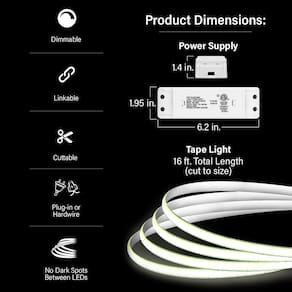 Feit Electric Fita de luz LED de 4,9 m, regulável, plug-in/fio direto, fitas de LED ultrafinas para casa, 2950 lúmens, branco brilhante 3000K, controle remoto incluído, vida útil de 25.000 horas,