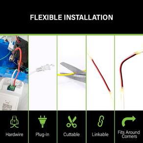 - ? Fácil de instalar – Nossas fitas de LED requerem configuração mínima, permitindo uma instalação rápida e sem complicações. Ele vem com todo o hardware de montagem necessário e suporte adesivo, facilitando a instalação. Escolha entre plug-in ou instalação direta de fio, dando a você a flexibilidade para instalar suas luzes onde você mais precisar.