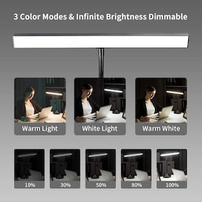 - 1. ?Base e grampo intercambiáveis: fornecemos uma base resistente, bem como um grampo (até 5 cm) para esta nova luminária de mesa com duas formas de uso, uma é usar uma base resistente, pode ser usada para leitura de quarto, luz de prática de piano, luz de estudo de mesa, a outra pode ser usada com o grampo, conveniente para pintura, desenho, artesanato, etc.