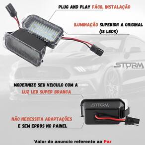Luz de placa ford ka + sedan kit par 2 lâmpadas led lanterna Par luz de placa super led led branco para ford Somos a storm parts, vendemos peças importadas e nacionais de alta qualidade com , a nossa equipe especializada está pronta para tirar qualquer duvida, conte sempre conosco. Compatível com: Novo ka sedan: 2015, 2016, 2017, 2018, 2019, 2020 Novo ka hatch: 2015, 2016, 2017, 2018, 2019, 2020 Nova ecosport: 2013, 2014, 2015, 2016, 2017, 2018, 2019 New fiesta: 2013, 2014, 2015, 2016, 2017, 2018, 2019 Focus 2008 a 2014 Especificações: Condição: novo com . Origem: Lâmpada: placa de led integrada 18 micro leds A prova d'agua. Duração led: estimado em 50 mil horas em utilização Cor da luz: super branca Principais perguntas: P. Necessita adaptação para instalar P. Acusa algum erro no painel do carro P. Anuncio é referente a uma unidade o par R. Anuncio referente ao par lado direito + lado esquerdo P. Qual a condição do produto R. Vendemos somente produtos novos e lacrados Apesar de fácil instalação recomendamos a instalação por um profissional.
