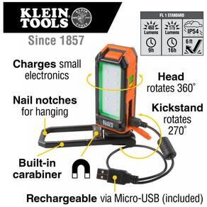 Suportes, ganchos, travas e montagens magnéticas para a Luz de Trabalho Persol Recarregável Versátil Os modos de luz LED são alto 460 lúmens por 9 horas e baixo 175 lúmens por 16 horas Capaz de carregar smartphones e outros pequenos dispositivos via USB A Direção de luz infinita cabeça gira 360 graus enquanto o suporte gira 270 graus O suporte possui ímãs fortes para montagem, três entalhes e um mosquetão embutido para fácil suspensão Marca: Não Informado