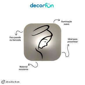 A Luminária Luz Divina, com seu design delicado e espiritual, não é apenas uma peça decorativa, mas também um símbolo de proteção e elegância. Inspirada na imagem de Nossa Senhora, esta luminária foi cuidadosamente elaborada para aqueles que buscam uma conexão mais profunda com a espiritualidade e um ambiente acolhedor em suas casas.Feita com materiais de alta qualidade, a luminária apresenta uma construção robusta que garante durabilidade. Seu acabamento refinado proporciona um toque de sofisticação a qualquer ambiente, sendo ideal para salas de estar, quartos ou espaços de meditação. Com uma iluminação suave e acolhedora, ela cria uma atmosfera relaxante e convidativa, perfeita para momentos de reflexão e oração.A Luz Divina não é apenas um objeto decorativo; é uma fonte de energia positiva e proteção espiritual. Ao acender a luz, você não apenas ilumina seu espaço, mas também invoca a presença protetora de Nossa Senhora, trazendo uma sensação de paz e segurança para todos que estão ao redor. É uma maneira elegante de integrar a espiritualidade no dia a dia, sem abrir mão do estilo.Sua versatilidade é uma de suas maiores qualidades. A luminária pode ser utilizada em diversos ambientes, adaptando-se perfeitamente a diferentes estilos de decoração, desde os mais clássicos até os mais modernos. Seja em um altar, ao lado da cama, ou em um espaço de trabalho, a Luz Divina é uma adição que se destaca, transformando qualquer espaço em um local de serenidade e proteção.O design ergonômico e a tecnologia de iluminação eficiente garantem que a luminária não apenas embeleze seu ambiente, mas também seja funcional. Com baixo consumo de energia e facilidade na substituição das lâmpadas, a Luz Divina é uma escolha consciente que alia sustentabilidade e beleza, refletindo um compromisso com a responsabilidade ambiental.Além disso, a Luminária Nossa Senhora é um presente significativo e hedônico, perfeito para celebrações religiosas, casamentos, ou como uma demonstração de carinho em datas especiais. Ao presenteá-la, você não está apenas oferecendo uma peça decorativa, mas proporcionando um símbolo de amor e proteção que será valorizado por anos.Em resumo, a Luz Divina: Luminária Nossa Senhora é uma combinação perfeita de elegância, funcionalidade e espiritualidade. É uma peça que não apenas ilumina, mas também enriquece o espaço em que se encontra, tornando-se uma companheira nas jornadas espirituais e um adorno que reflete sua fé. Transforme sua casa e crie um lar de proteção e beleza com essa luminária única.