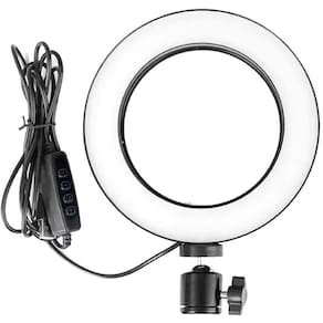 Desenvolvido para maquiadores, fotógrafos, cinegrafistas e etc, que buscam uma ótima maneira de iluminar com perfeição. Você pode ajustar o ângulo da iluminação por possuir um suporte articulado. É possível controlar as diferentes temperaturas de cores através do controle de ajuste que vai de 3500k à 5500k. A alimentação do iluminador é através de cabo Usb não acompanha adaptador de tomada e não possui bateria interna recarregável , você pode utilizar um adaptador de tomada de celular para ligar ou conectar no Usb do computador ou outro equipamento que forneça 5v Usb. O cabo Usb deverá estar sempre ligado para funcionar. O encaixe do Ring ligth é através de encaixe padrão de tripés de rosca. O mini tripé também serve para utilizar em outros equipamentos de até 1kg de peso, como projetores, celulares e etc. É recomendado e extremamente eficaz para a macro fotografia, fotografia médica, odontológica, científica, hobby e para a iluminação/fotografia de produções de maquiadores. - Temperatura da Luz: Quente, Fria e Intermediária - Conexão USB - não acompanha a tomada USB - Regulagem da Intensidade de Luz - Diâmetro do Círculo de Luz: 16 cm Marca: Exbon Ean: 0644824443133