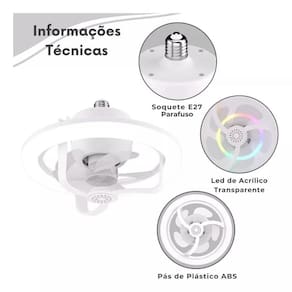 Luz e Ventilador 50W com Oscilação 360: Solução Completa Descrição do Ventilador de Teto com Luz LED 1. Iluminação Ajustável Este ventilador de teto vem equipado com luzes LED embutidas que oferecem três temperaturas de cor distintas quente, neutro e branco , variando de 3200K a 6500K. A funcionalidade adicional de luzes RGB cria uma atmosfera vibrante e ajustável para qualquer ambiente. Você pode personalizar o brilho e a temperatura da luz de acordo com suas preferências, garantindo a iluminação perfeita para qualquer ocasião. 2. Ventilação Personalizável O ventilador possui lâminas atualizadas com capacidade de oscilação de 360, permitindo um controle preciso sobre a direção e a intensidade do fluxo de ar. Com o controle remoto, você pode ajustar a velocidade do vento e a oscilação para desfrutar de uma brisa silenciosa, vento fresco ou um fluxo de ar mais forte, tudo sem sair do seu lugar. Ideal para manter-se confortável enquanto estuda, trabalha ou dorme. 3. Dois Métodos de Controle O ventilador pode ser controlado de duas maneiras: por meio do controle remoto ou pelo de ligar/desligar. Com o controle remoto, você pode acessar todas as funções de forma prática e rápida. No modo , você pode selecionar três modos básicos: primeiro, ligue a luz; em seguida, ligue o ventilador; ou, finalmente, ligue o ventilador e a luz simultaneamente. 4. Instalação Simples com Base E27 A base de rosca E27 facilita a instalação e das lâmpadas. Este ventilador de teto é adequado para uma variedade de ambientes, como garagens, salas de ferramentas e outros espaços. Oferece três velocidades de ventilação baixa, média e alta que podem ser ajustadas pelo controle remoto, permitindo que você ajuste o fluxo de ar conforme suas necessidades. 5. Segurança Aumentada Para maior segurança, o ventilador de teto possui uma proteção tipo gaiola que cobre as lâminas, reduzindo o risco de acidentes. Este design é especialmente recomendado para ambientes com tetos baixos ou áreas onde crianças estão presentes, oferecendo uma camada adicional de proteção contra possíveis impactos das lâminas. Marca: Não Informado