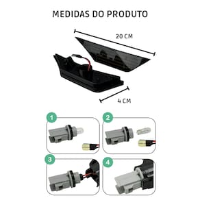 Características: - Material: Plástico ABS e LED; - Tamanho: igual ao autêntico - Cor da lente: Transparente; - Cor do Led âmbar, tom padrão de acionamento. - Quantidade: 2 Unidades; - 100% à prova d'água.