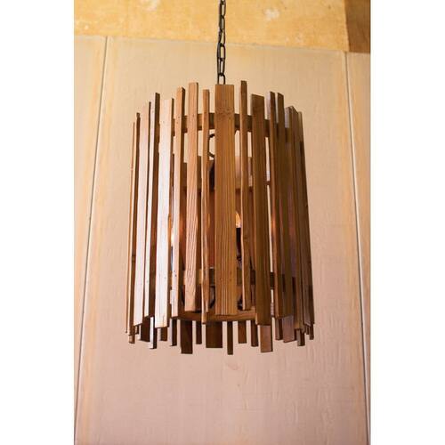 Luz pendente de ripas de madeira