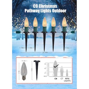 Decore sua garagem com este cordão de luzes de entrada C9! Observações: 1. Não pendure as decorações de luz de Natal enquanto estiver conectada. 2. Não prenda cabos de luzes de Natal ao ar livre com grampos ou pregos 3. Se mudar para um novo local, remova as lâmpadas antes da instalação 4. Verifique a condição das luzes de Natal na calçada antes da operação 5. Mantenha as lâmpadas a pelo menos 6 polegadas de outros objetos 6. Nota: Estaca afiada, mantenha-a longe de crianças. Especificações: Tipo de lâmpada: LED Material da sombra: plástico Comprimento total: 7,8 m Quantidade de LED: 20 Espaçamento da lâmpada: 38 cm Cabo de grafite: 45,72 cm Conectável: 21 fios (primeiro conjunto incluído) Potência da lâmpada: 0,6 W Vida útil do LED: 6.000H Base da lâmpada: E17 Cor da iluminação: branco quente Modo de iluminação: estável Tipo de cabo: 20AWG Cor do fio: verde Potência de entrada: 120 V ~ A embalagem inclui: 1 x 20 luzes LED C9 para caminho de Natal 20 estacas de chão 1 x manual do usuário (idioma português não garantido). Peça agora para enfeitar seu gramado ou calçada de pedrinhas! - 20 luzes de Natal LED C9 ao ar livre: luzes de caminho de Natal C9 de 7,8 m com 20 lâmpadas de morango C9. Espaçamento de luz de 38 cm, marcadores de caminho de 11,6 cm, 20 estacas resistentes, compatível com soquete E17, efeito de iluminação branca quente, conecte e aproveite. Esta decoração externa de natal para quintal será ótima para o seu caminho, jardim, pátio, decoração de férias - Luzes conectáveis para passarela de Natal: Estas luzes de jardim para decoração de Natal conectáveis ao ar livre são facilmente instaladas com as estacas equipadas, você pode consertá-las ou colocá-las em qualquer lugar necessário. Elas são conectáveis a 21 conjuntos de luzes LED C9, 164 metros estarão disponíveis para maximizar sua expectativa de iluminação de área maior e decorações de festivais. Com o ponto de âncora conectando o campo de neve, as luzes do caminho de Natal são definitivamente as flores desabrochando no jardim de inverno - Luzes de decoração de Natal à prova d'água para ambientes externos: Estas luzes de estacas de Natal para o quintal estão em conformidade com o teste de chuva da certificação ULEstas luzes de decoração de férias são decorações maravilhosas para casa, pátio, gramado, jardim, bistrô, pub, café, restaurante, shopping center, supermercado, Ano Novo, aniversário, reunião, festa de discoteca, jantar, festa noturna, o plugue não é à prova d'água, deve ser protegido do dia chuvoso - Substituível: fácil de instalar e substituir, ilumine seu caminho de solo e crie beleza à noite. Cada lâmpada funciona individualmente, se uma estiver quebrada ou removida, o resto permanece aceso. O cabo é durável e flexível para que você possa enrolar, enrolar qualquer estrutura para criar os efeitos de iluminação desejados - Ocasiões aplicáveis: incríveis luzes LED C9 com estacas, perfeitas para o caminho de Natal, entrada, passarela, jardim e pátio, separe e alinhe sua área pessoal com uma luz deslumbrante e brilhante. Crie sua atmosfera de Natal e feriados