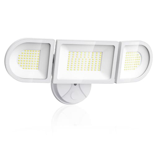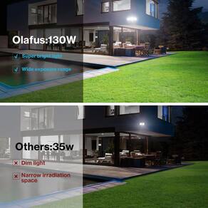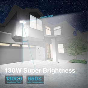 Este holofote externo de 130 watts é extremamente mais brilhante do que o antigo holofote com lâmpada de halogêneo tradicional equivalente a 500W. Pode produzir até 13000 lm de brilho e fornecer mais de 1977 ft² de alcance de iluminação. Tão brilhante que pode iluminar todo o quintal, quase como um campo de beisebol. - Super brilhante de 130 W: esta holofote LED para ambiente externo inclui no total 154 unidades de LED de alta qualidade, que oferecem alto brilho de 13000 lúmens. Também pode economizar mais de 80% em sua conta de eletricidade em comparação com a lâmpada de halogêneo tradicional equivalente a 500 W. Sem sensor de movimento, sem anoitecer ao amanhecer - Faixa de iluminação mais ampla: as cabeças triplas são ajustáveis, você pode acender em um ângulo diferente conforme sua necessidade. Ângulo de feixe de 120° para uma cobertura de iluminação mais ampla. A área de cobertura de iluminação de luzes de segurança LED Olafus 130 W até 1977 ft² - IP65 à prova d'água: Com a classificação IP65 à prova d'água, a holofote LED para ambientes externos funciona bem em climas adversos, como tempestade, vendaval e tempestade de neve. Perfeito para iluminar todo o quintal, garagem, entrada, jardim. Fornece mais segurança para você - Material durável: a luz de segurança externa é feita de alumínio fundido, economia de energia e dissipação de calor eficiente. É mais durável do que outras holofotes LED, o que significa que proporciona maior vida útil - Fácil de instalar: basta montar a luz com fio em uma caixa de junção seguindo alguns passos simples de fiação, pode ser fácil e rapidamente instalado fora sob o soffit ou montado sob o canto do telhado. Este holofote LED externo só pode ligar/desligar por um interruptor de parede