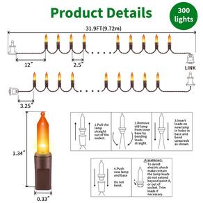 Lamphome 300 luzes de Halloween de 150 unidades com fio marrom, luzes de corda para decorações de férias, casamento, Natal (laranja) - 2 unidades de luzes de fio marrom de 90 m: luzes laranja de 300 unidades, com 4 lâmpadas piscantes, 4 lâmpadas extras e 4 fusíveis de substituição. Cada lâmpada tem espaço de 6,3 cm, 2,5 V e 0,425 W por lâmpada, fusível de 3 A integrado para uso seguro. - QUALIDADE E SEGURANÇA SUPERIOR: Luzes de corda bem feitas de longa duração com design à prova d'água e um brilho quente, perfeitas para decoração interna ou externa. - Conexões de ponta a ponta: cada conjunto vem com plugue de ponta a ponta e pode se conectar a até 3 conjuntos (450 luzes) para iluminar seu espaço. - Luzes de corda perfeitas para o Dia das Bruxas: decore com luzes de corda para iluminar sua casa, dia das bruxas, restaurante, árvores, pátios, cercas e muito mais. Ótimo para usar em muitos feriados – Halloween, Natal, Dia dos Namorados e muito mais! - SERVIÇO PÓS-VENDA: Se houver algum problema de qualidade com estas luzes de corda transparentes, aceitaremos sua solicitação para substituir as luzes de corda dentro de 180 dias após o recebimento.